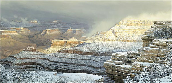 treasure. Sunset casts its amber glow across the snow-swept terraces of Yaki Point, northeast